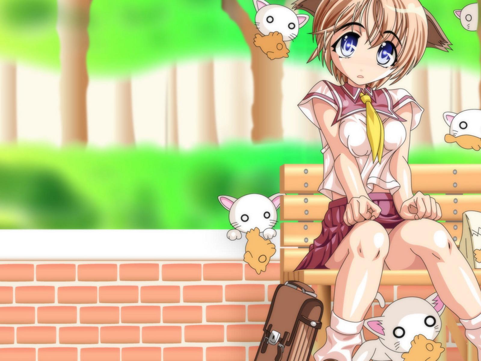 Wallpaper The little girl and kitties