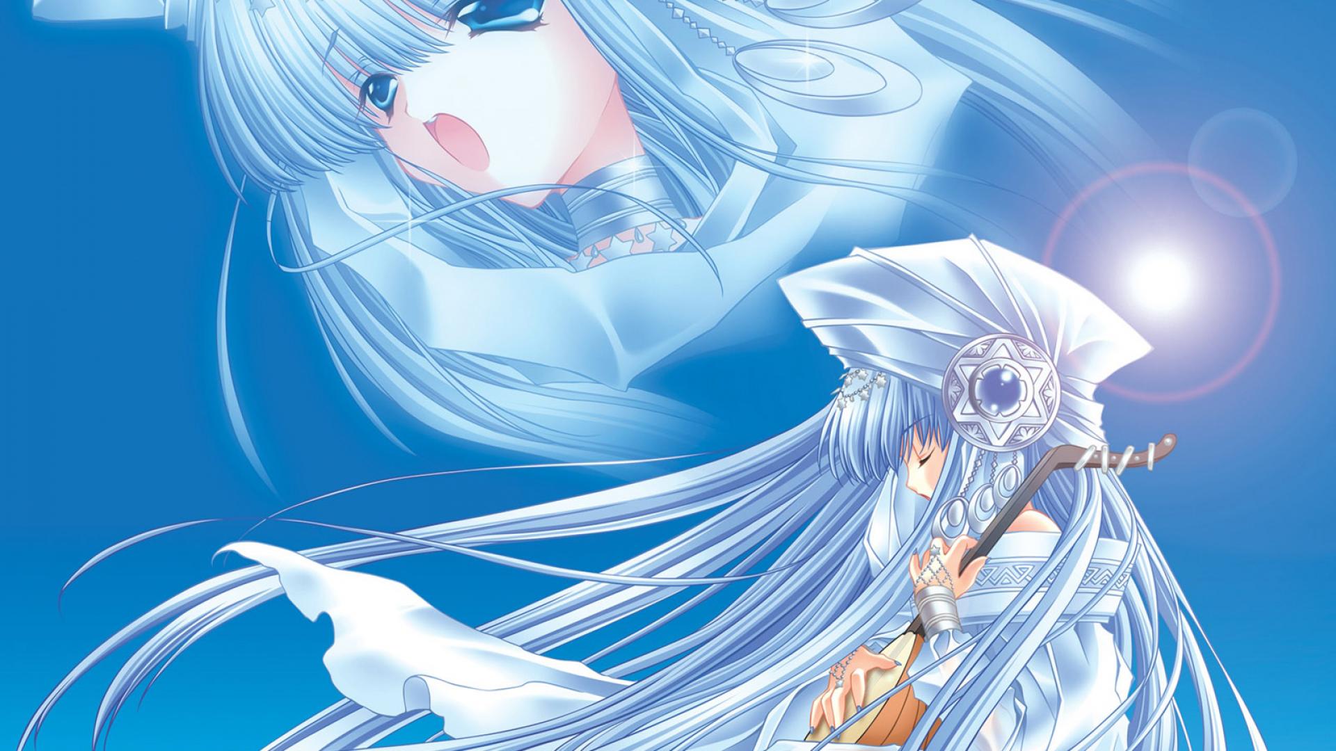 Wallpaper Two guys are sitting on a rock and listen to music, anime