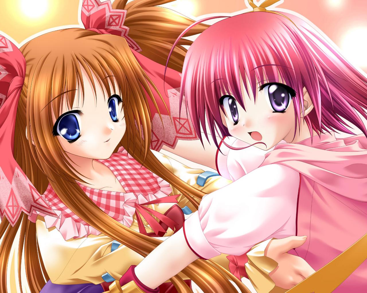 Wallpaper Girls in pink and blue dress
