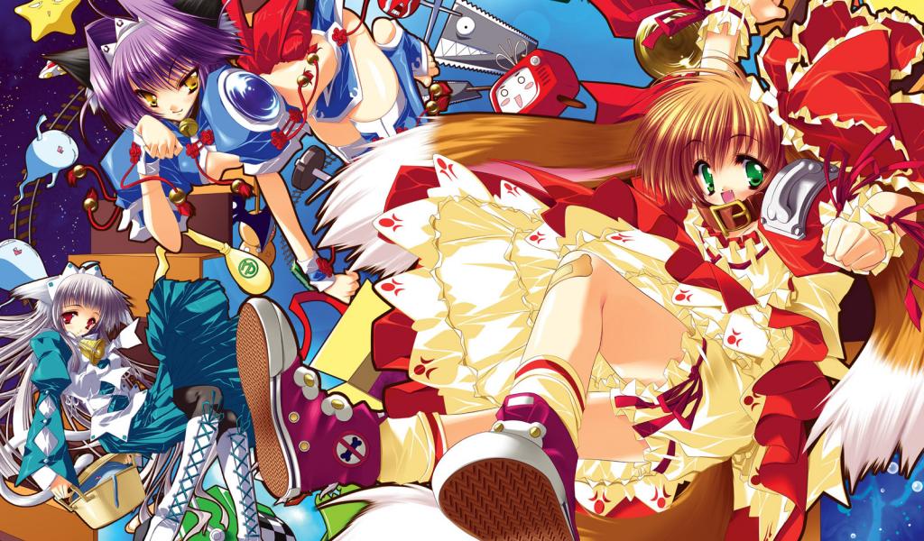 Wallpaper Anime girl holding a cat, anime Kagerou Project
