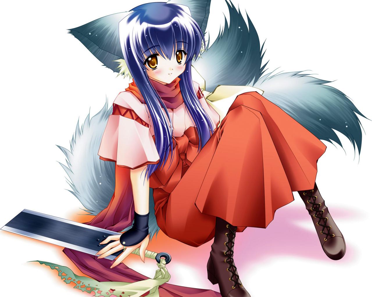 Wallpaper Girl with a sword, anime girl fairy Madoka