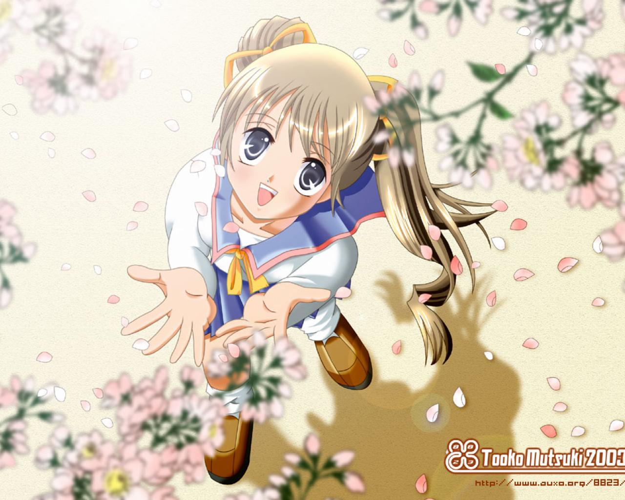 Wallpaper The girl in the flowers in the anime Tihayafuru