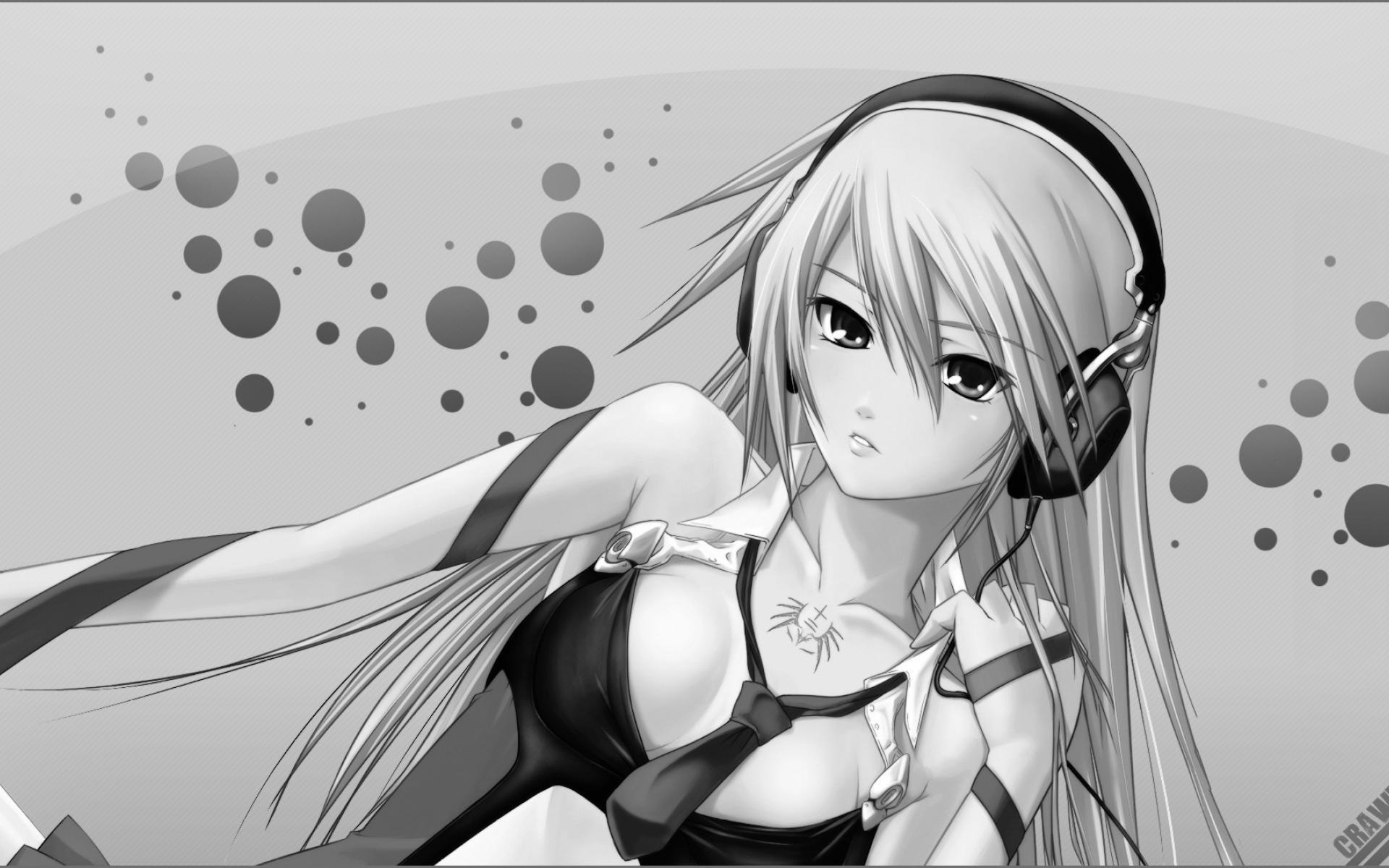 Wallpaper Gray drawing anime girls