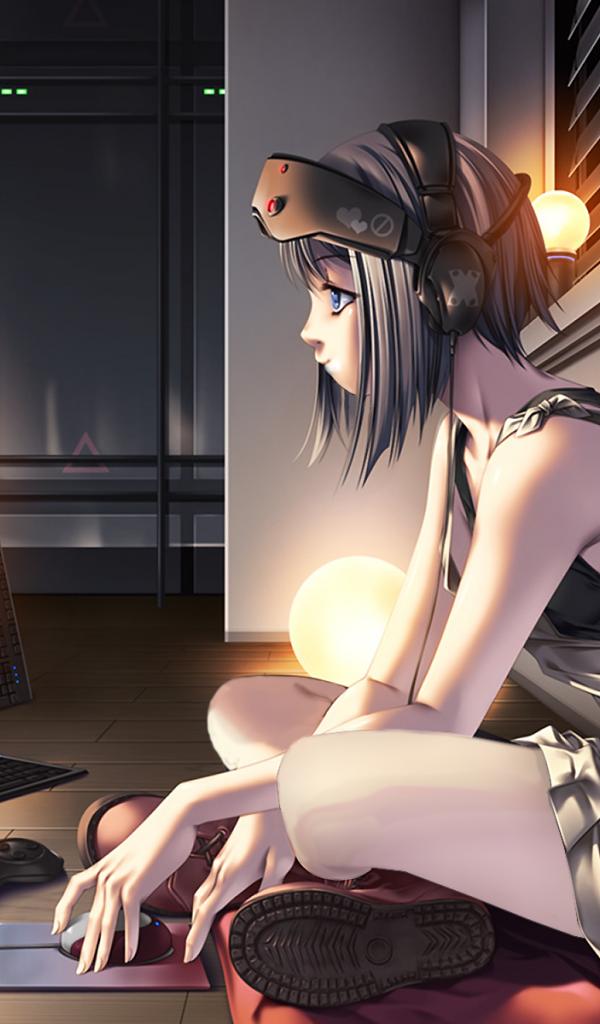 Wallpaper The girl looks at the city at night, anime girl fairy Madoka