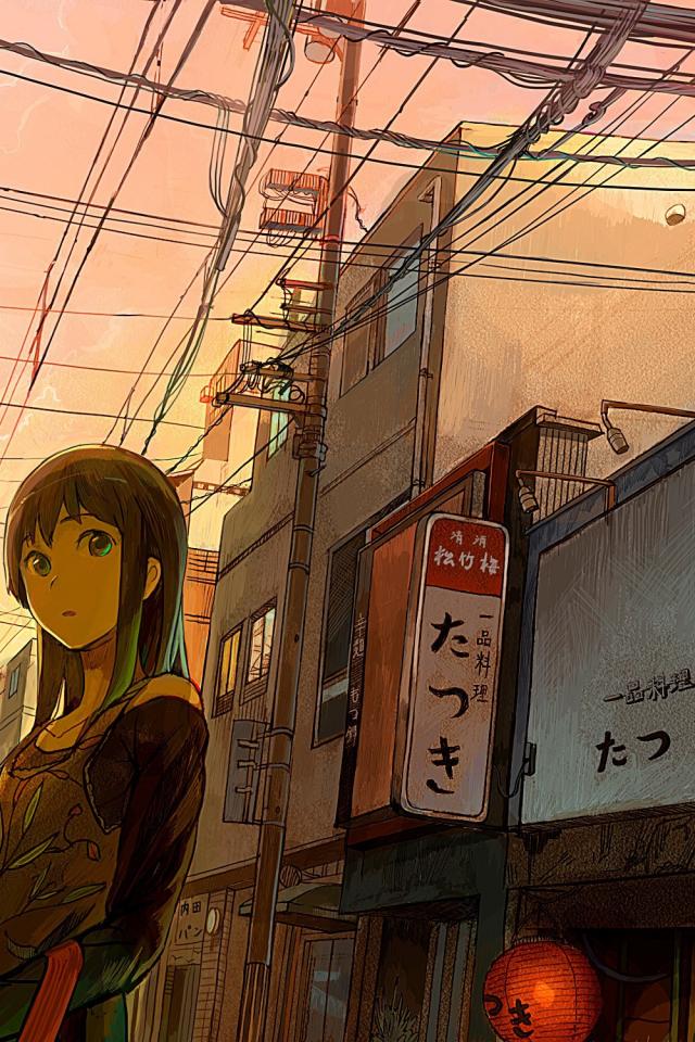 » Wallpaper Anime girl walks through the city