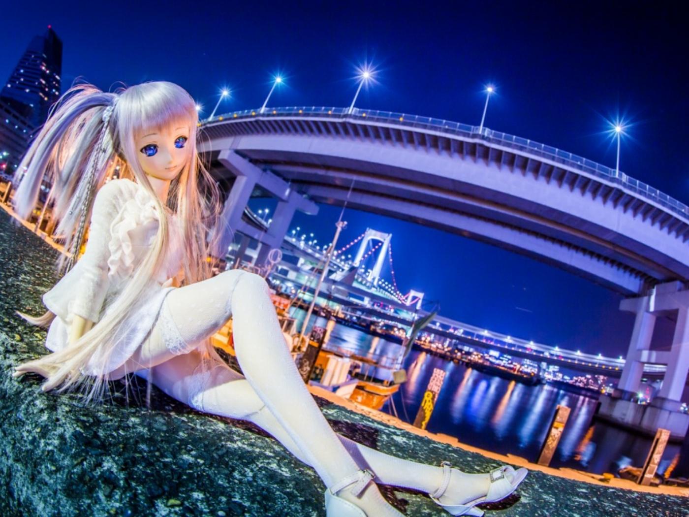 Wallpaper Anime doll in the street