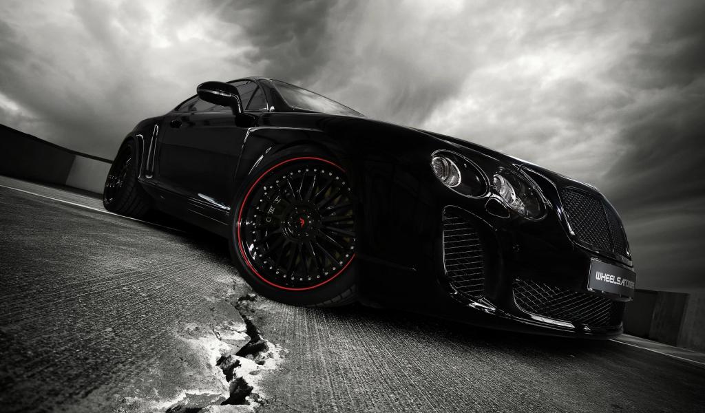 Wallpaper Black car on the cracked asphalt