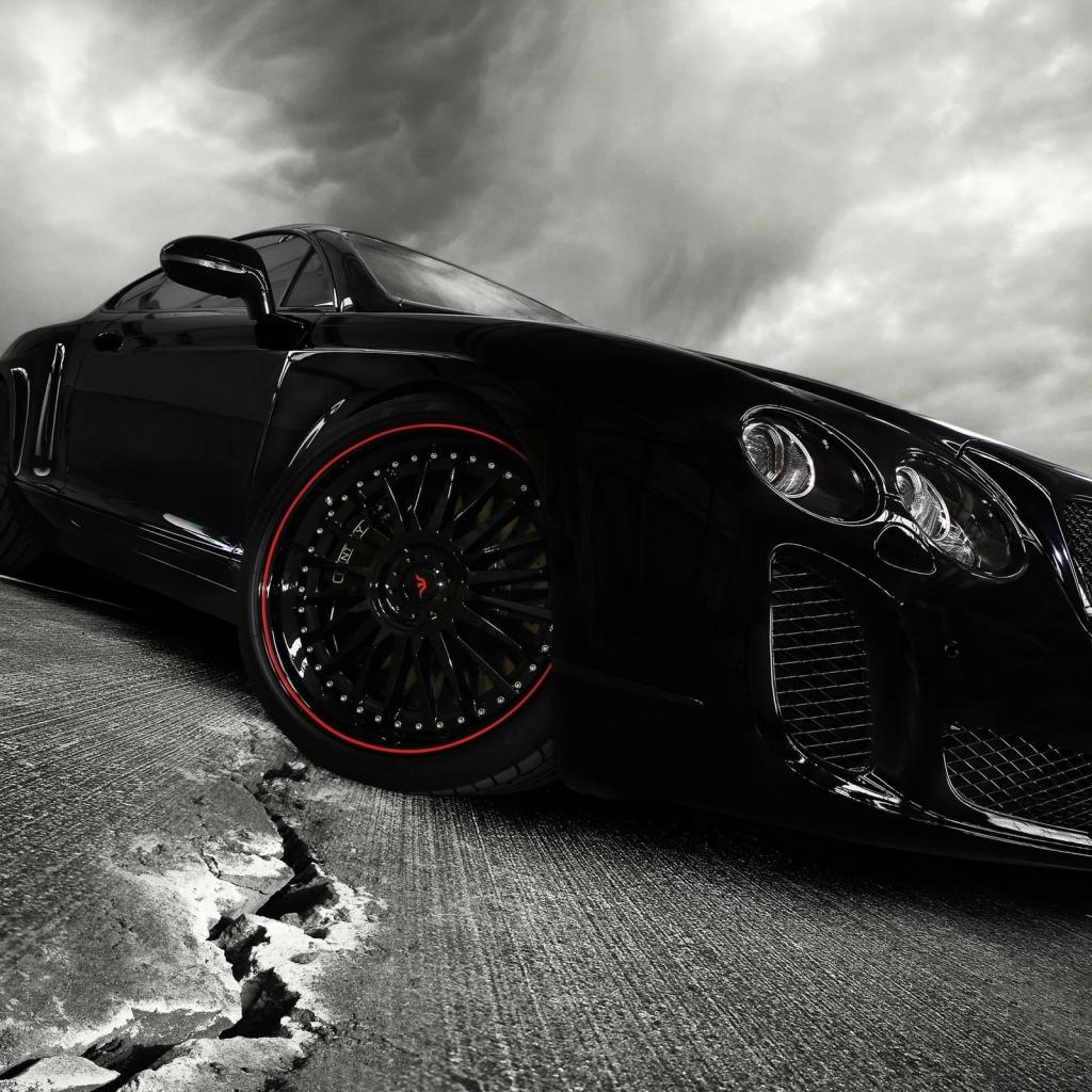 Wallpaper Black car on the cracked asphalt