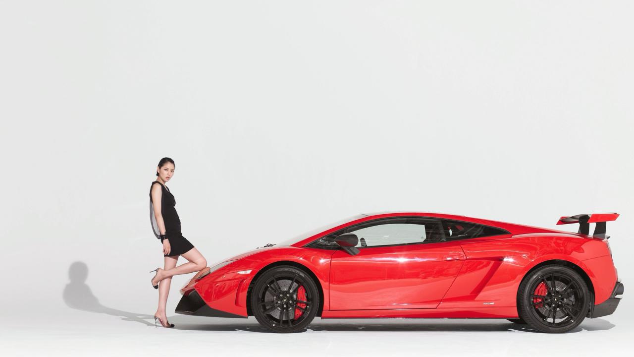 Wallpaper She put a knee on the hood of a car