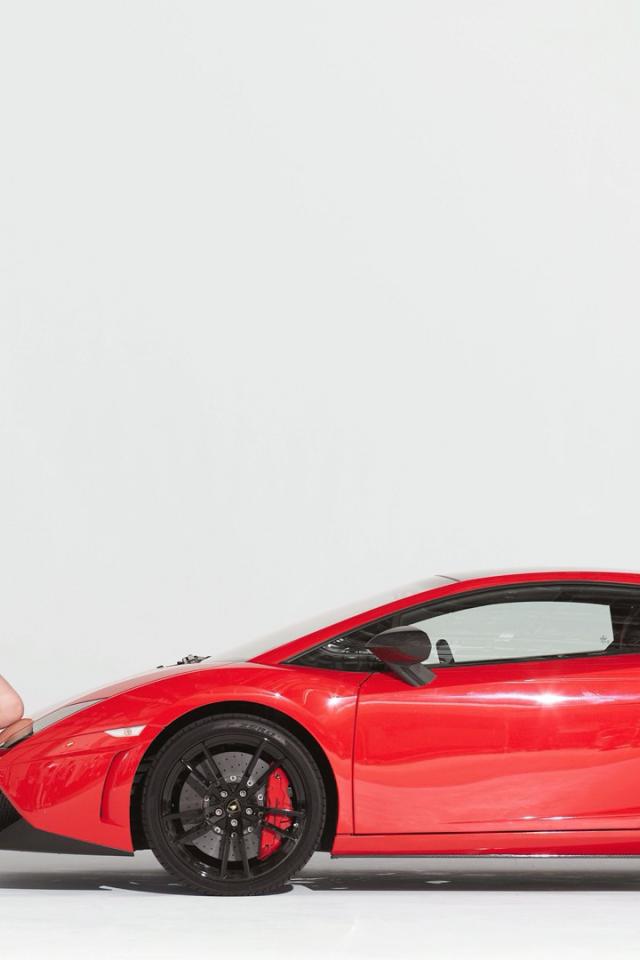 Wallpaper She put a knee on the hood of a car