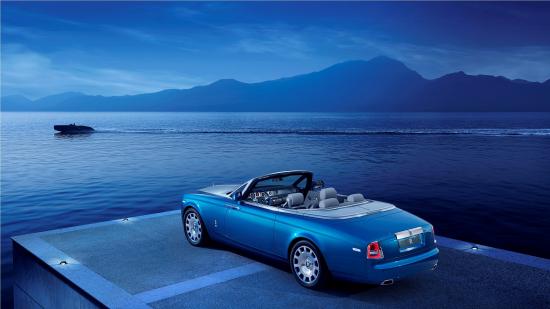Wallpaper Blue convertible Rolls-Royce on the shore