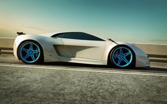 Wallpaper White sports car with blue discs