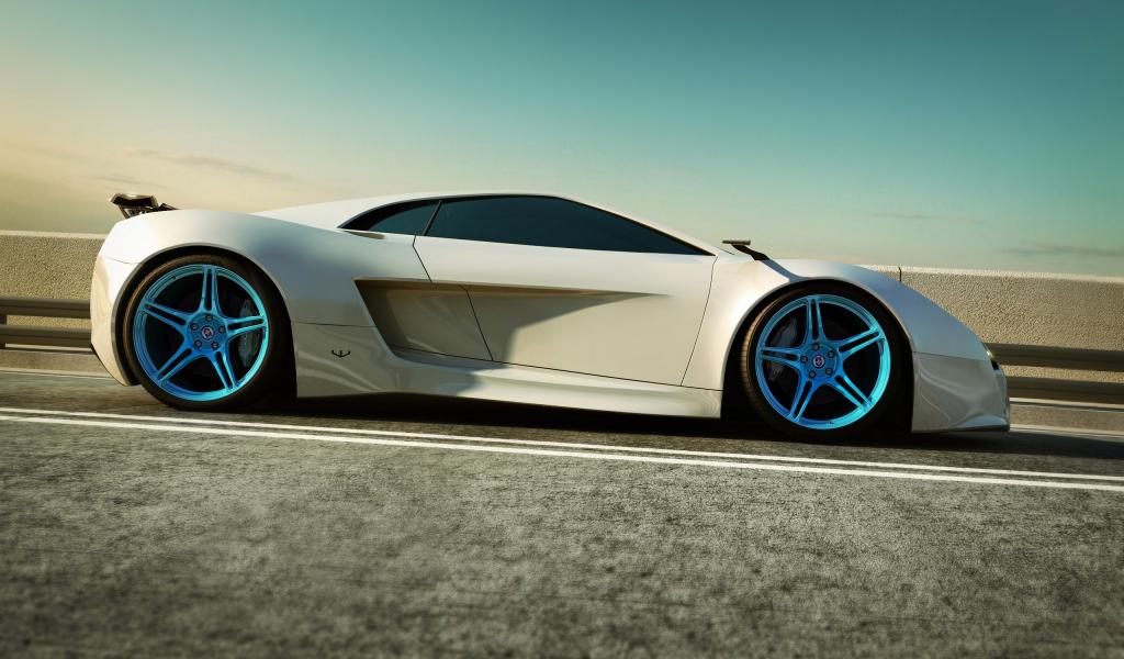 Wallpaper White sports car with blue discs