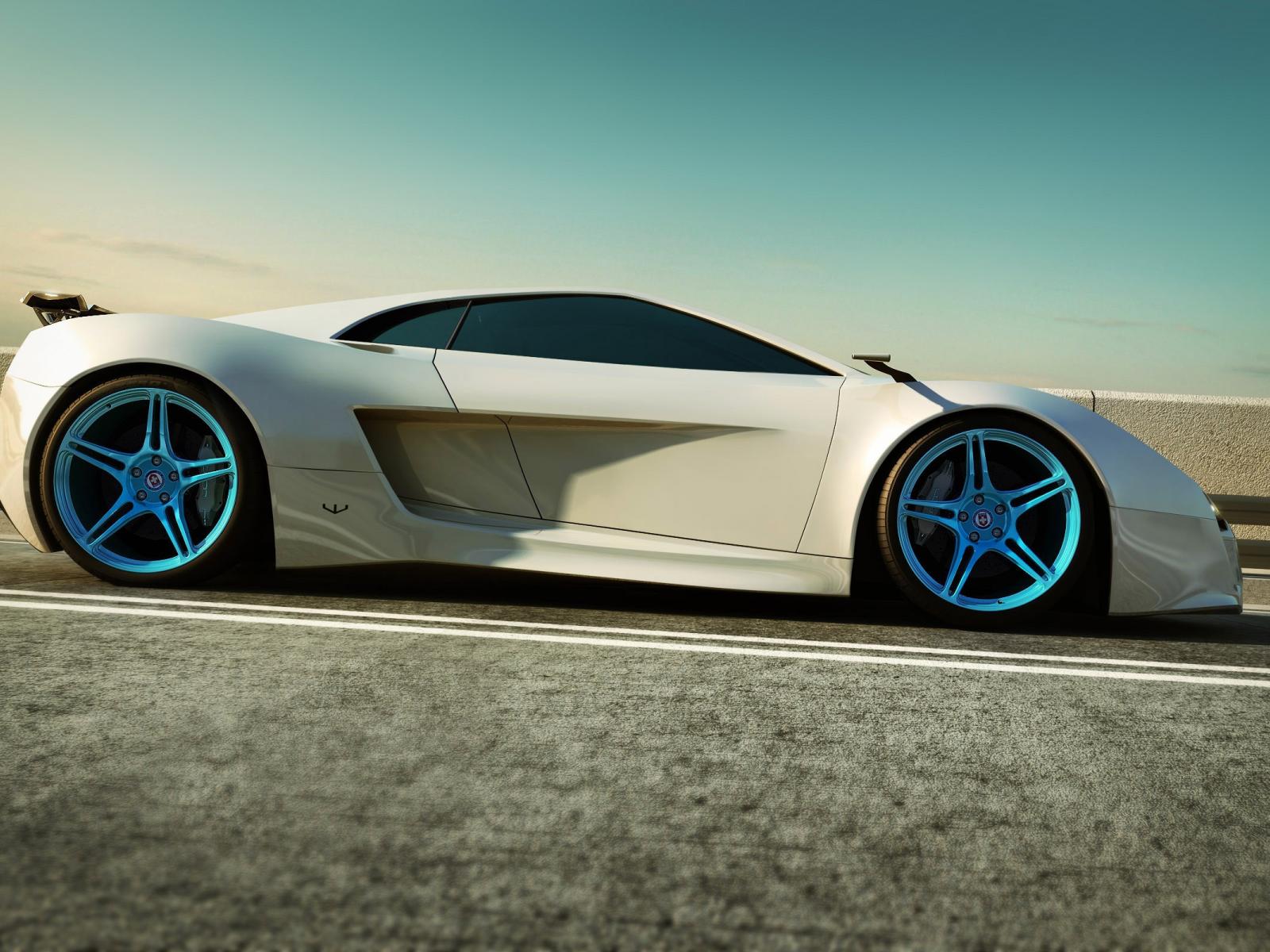 Wallpaper White sports car with blue discs
