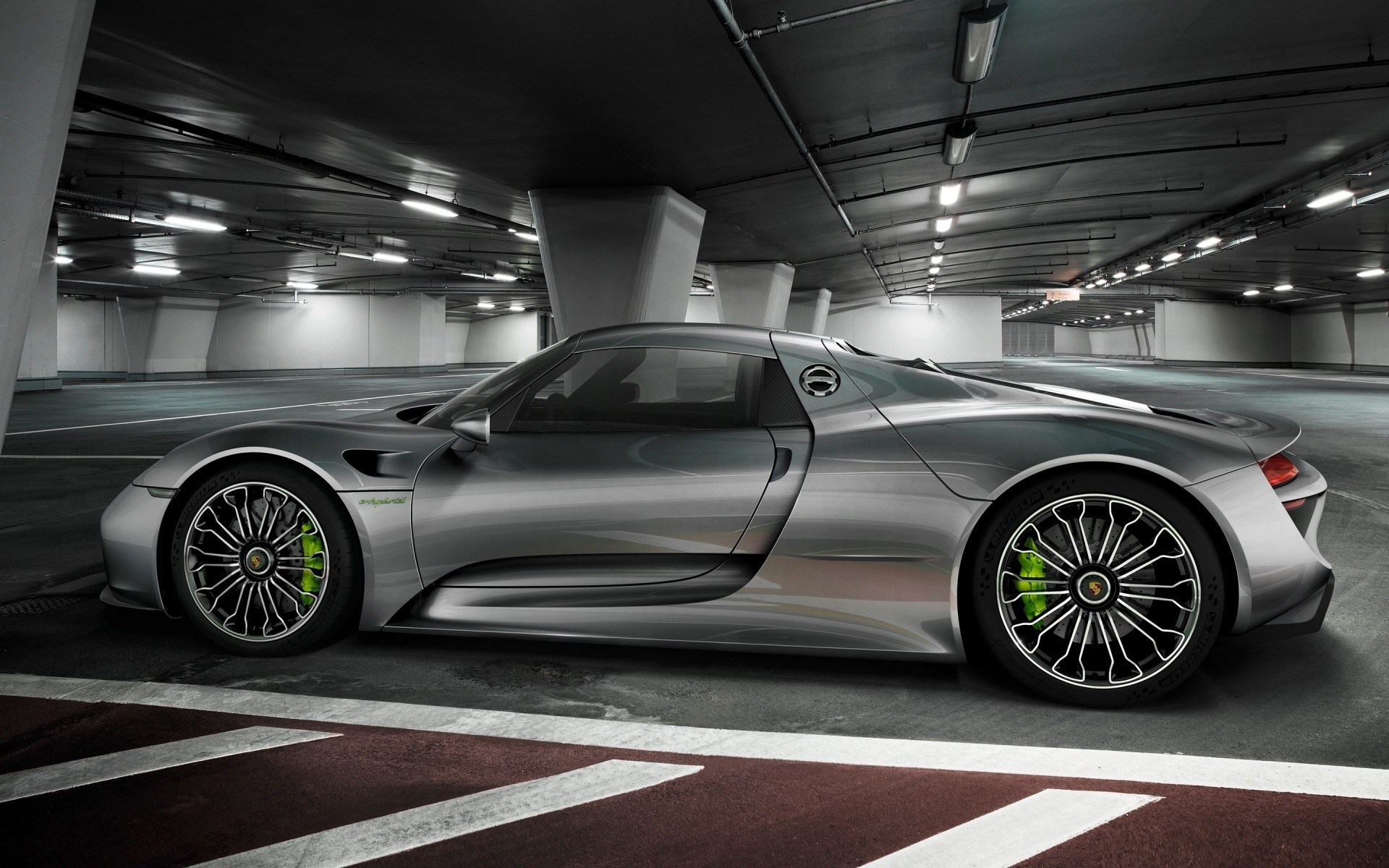Wallpaper Luxury silver car in the underground parking