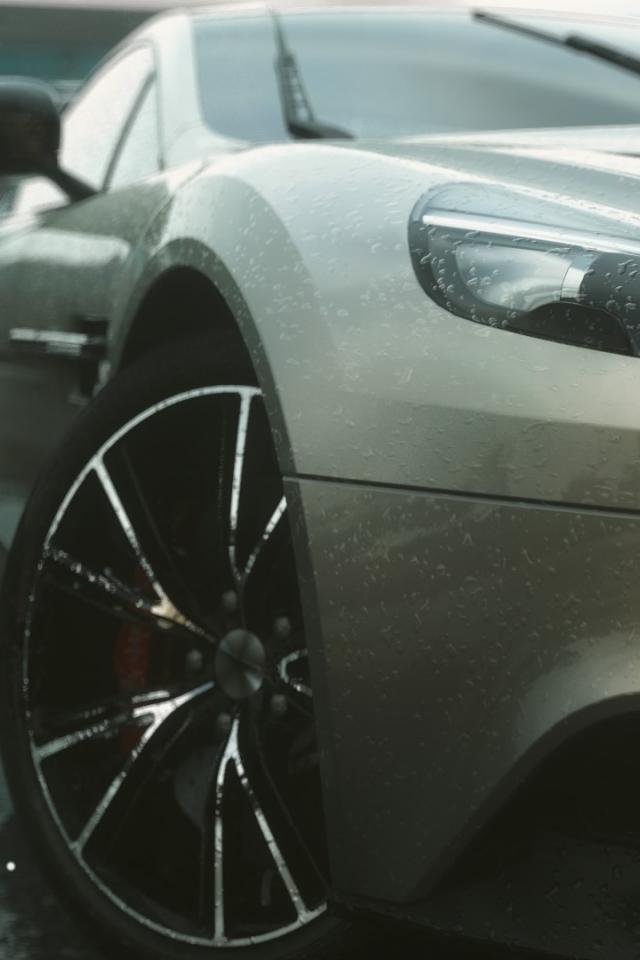 Wallpaper Gray sports car in the rain