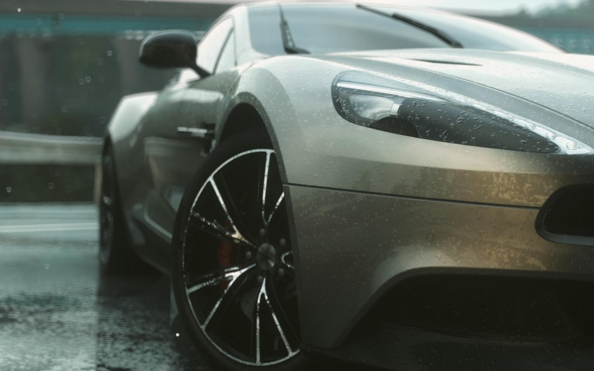 Wallpaper Gray sports car in the rain