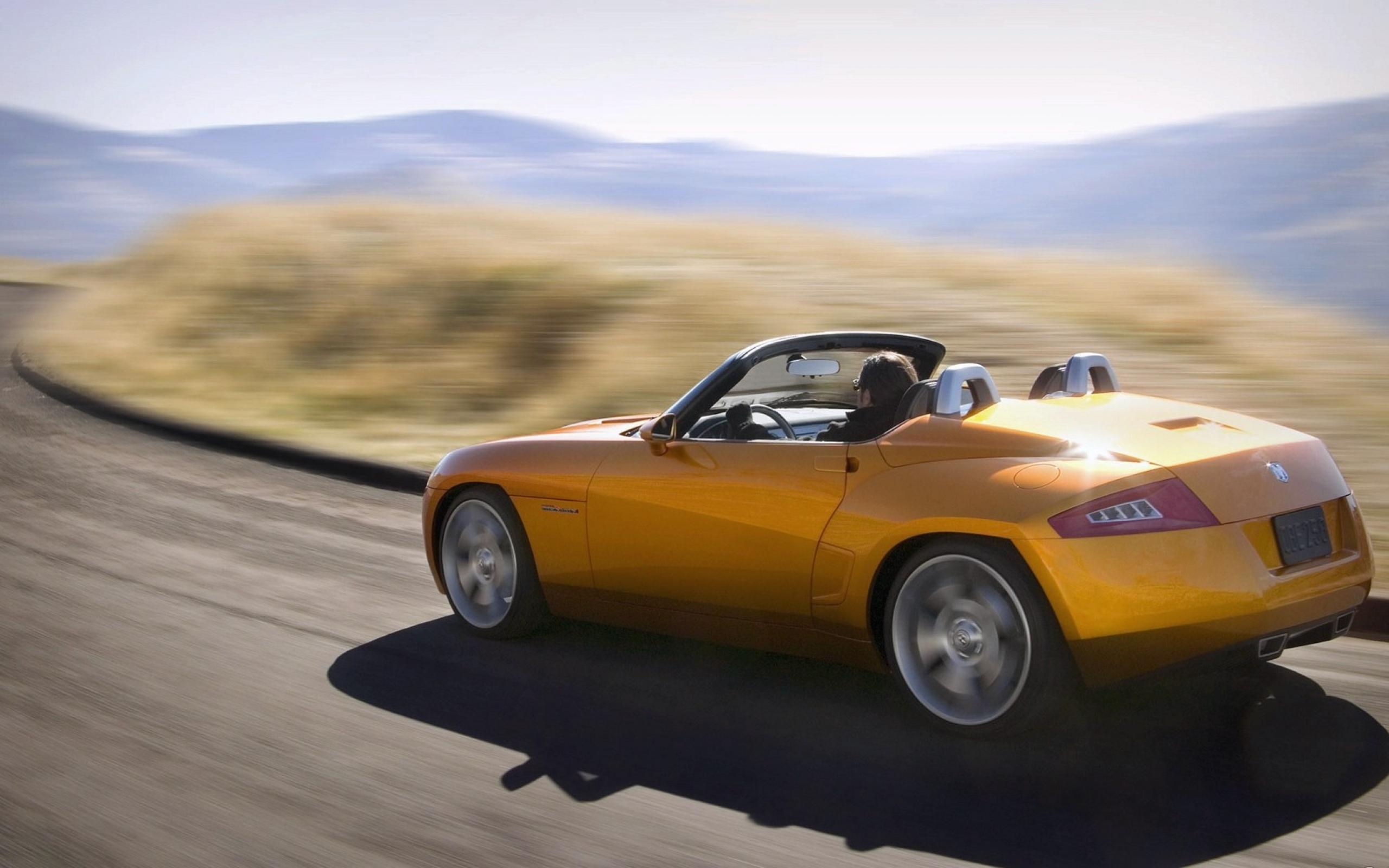 Wallpaper Yellow convertible sports car on the highway