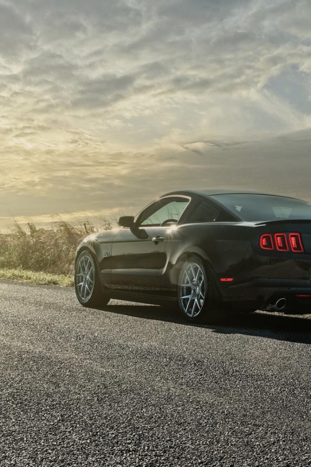 Wallpaper Black car parked on the road