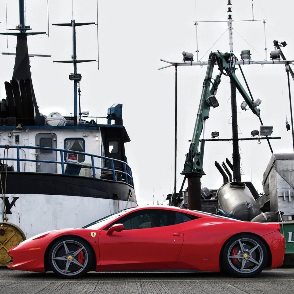 Wallpaper Red car on the pier