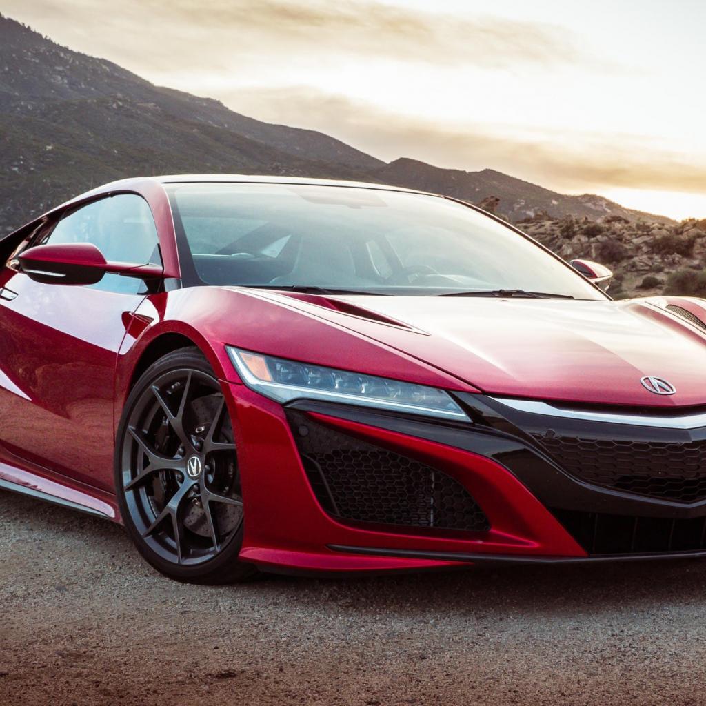 Wallpaper Red car Acura NSX, 2017 amid the mountains