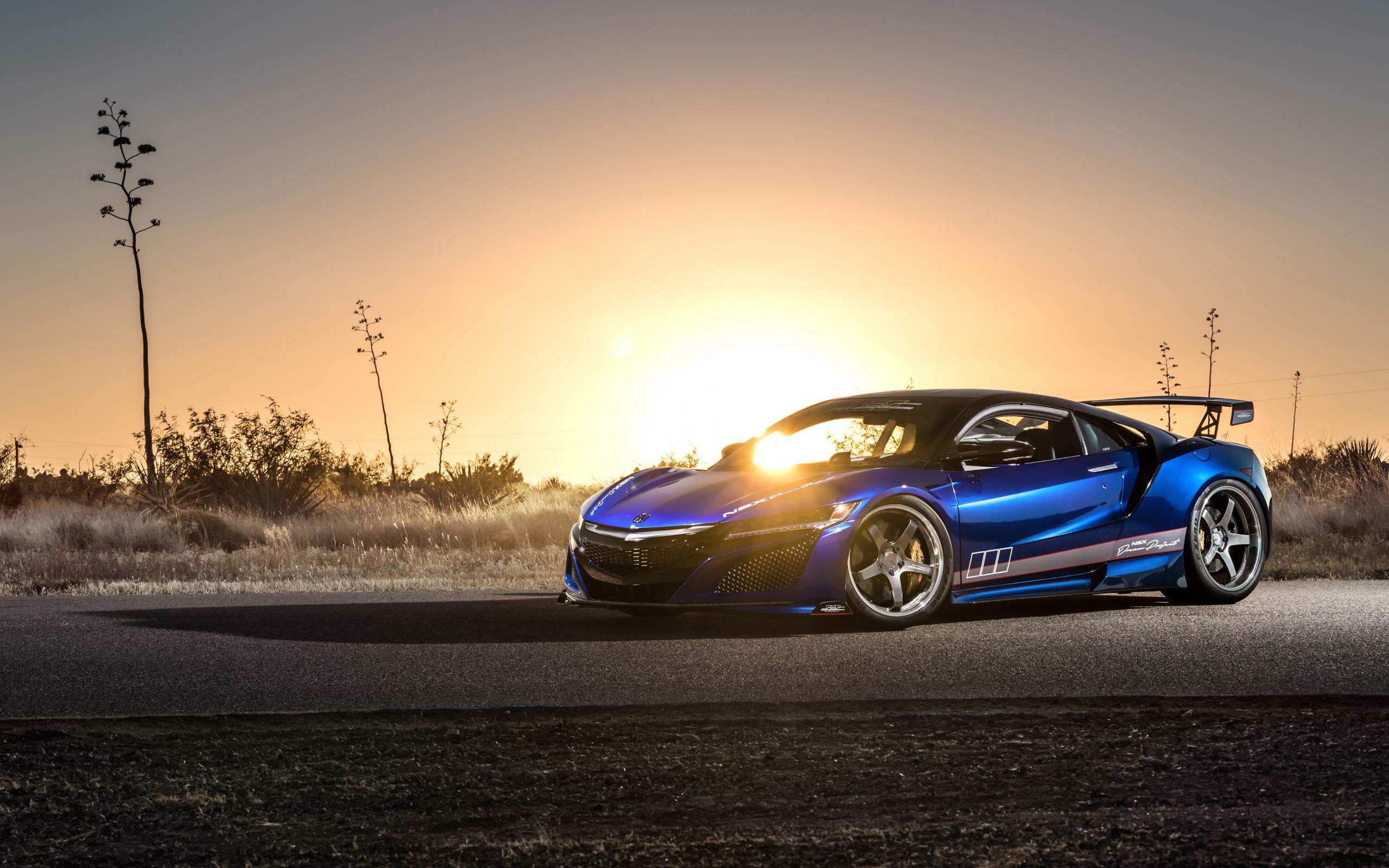 Wallpaper Blue sports car Acura NSX, 2017 in the background of a bright sun