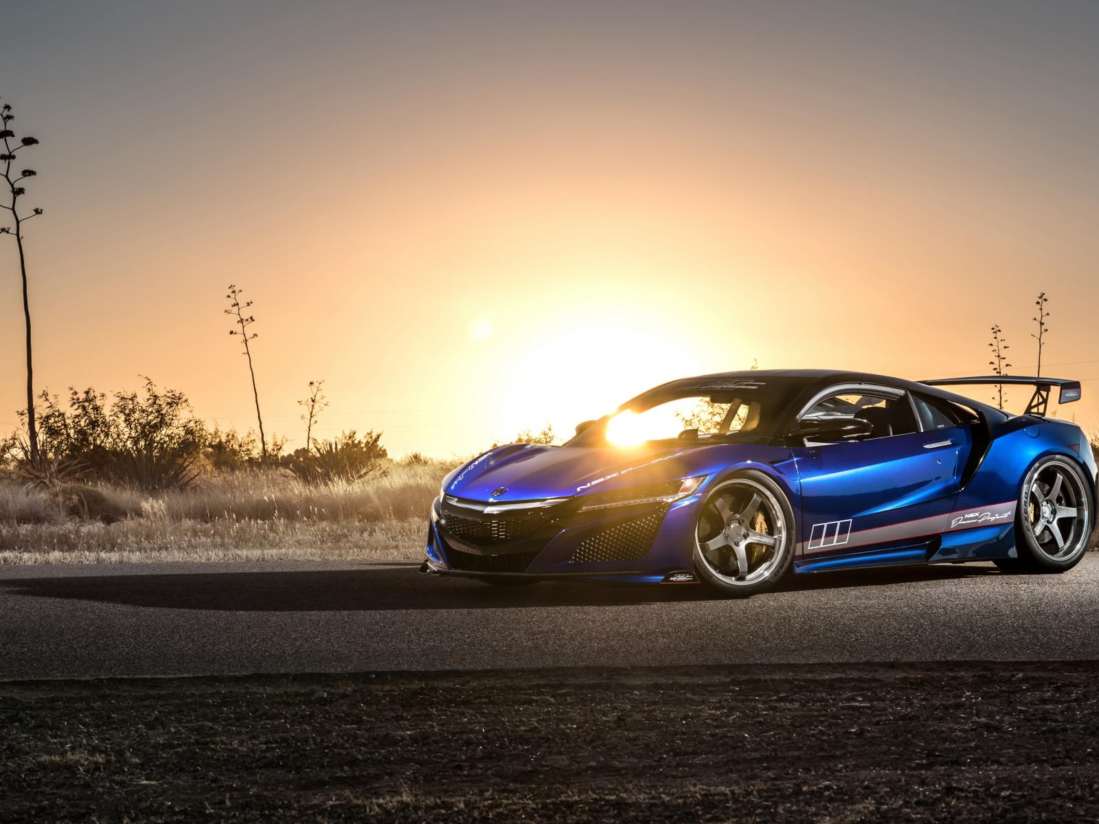 Wallpaper Blue sports car Acura NSX, 2017 in the background of a bright sun