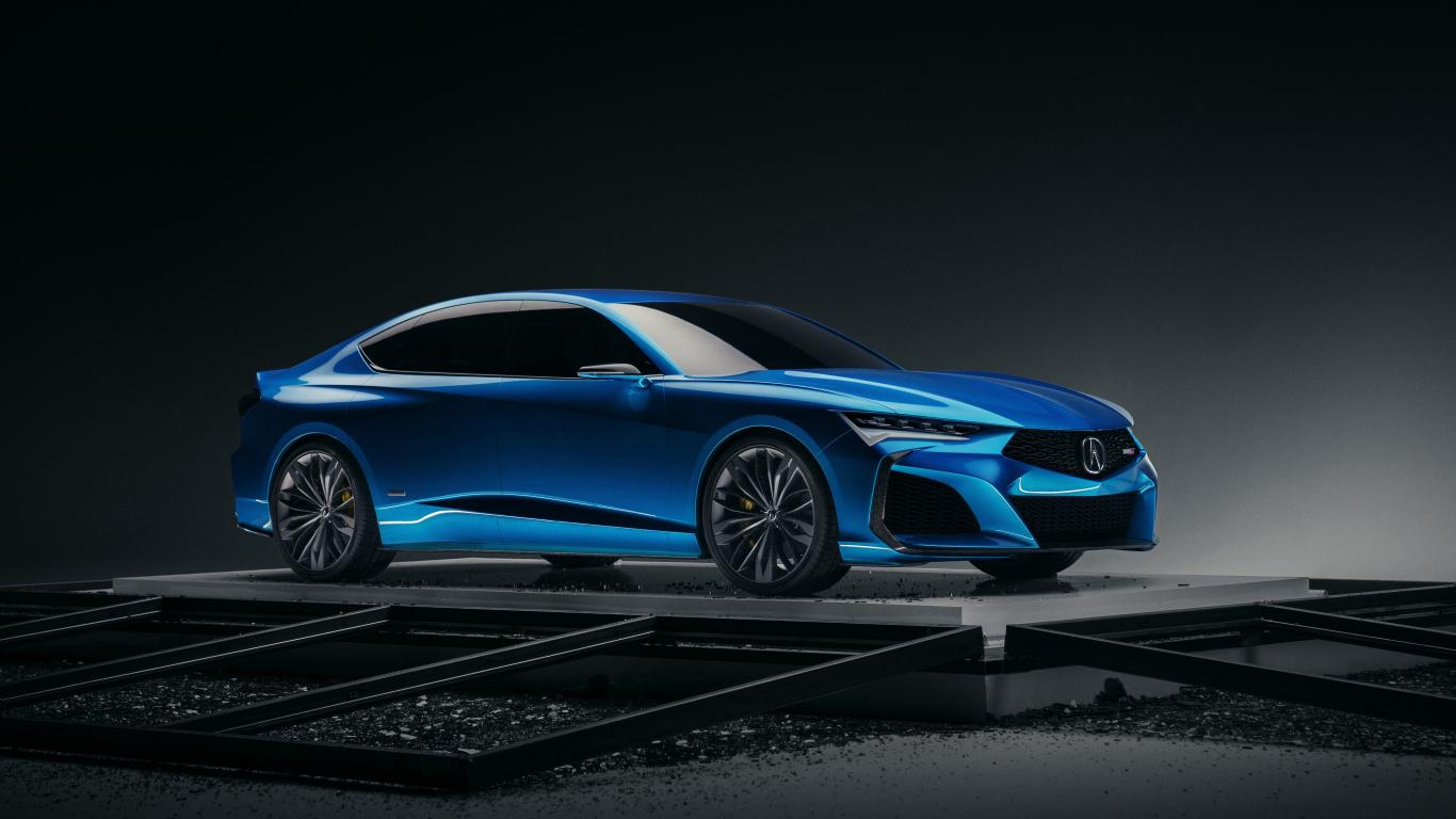 Wallpaper Blue new 2019 Acura Type S Concept car on a gray background
