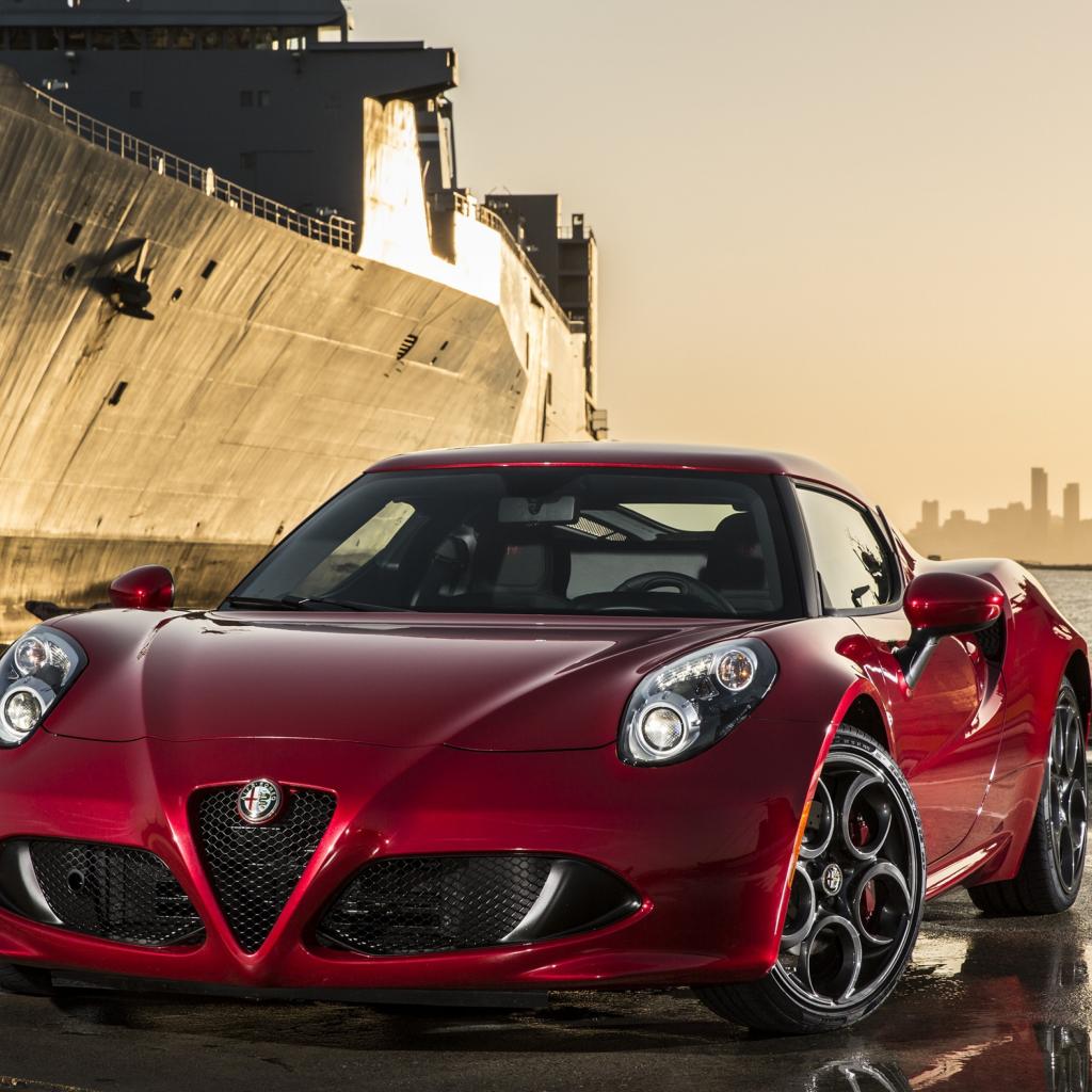 Wallpaper Red Alfa Romeo 4C on the background of the ship