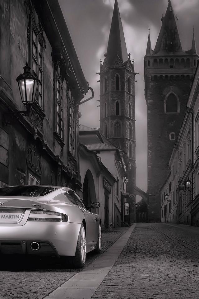 Wallpaper Gorgeous gray Aston Martin in the city