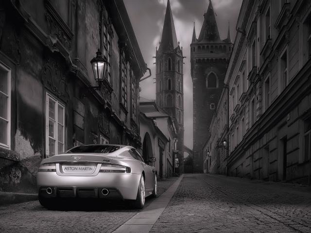 Wallpaper Gorgeous gray Aston Martin in the city