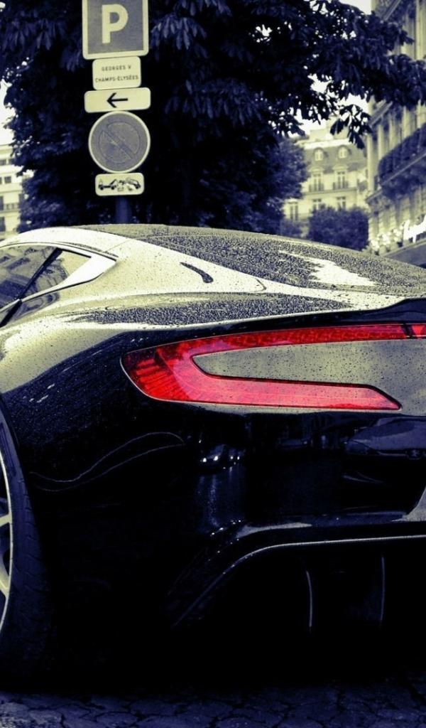 Wallpaper Black Aston Martin One 77 in the city