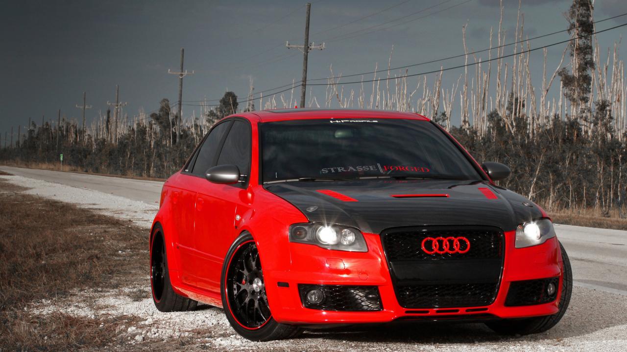 Wallpaper Red Audi with black hood
