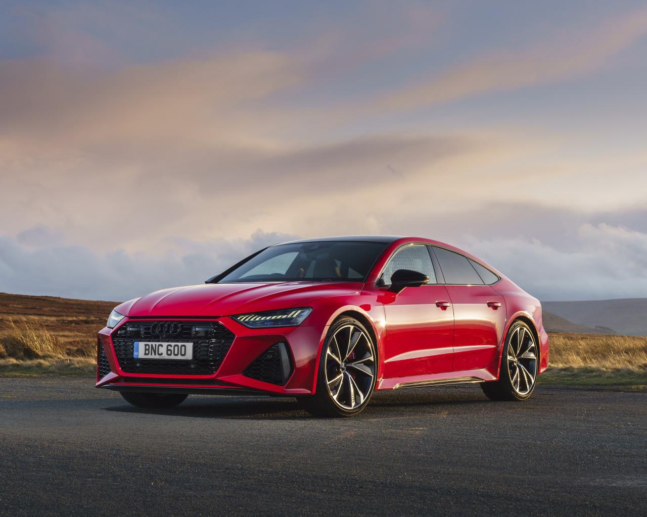 Wallpaper Red car Audi RS 7 Sportback 2020 on the road