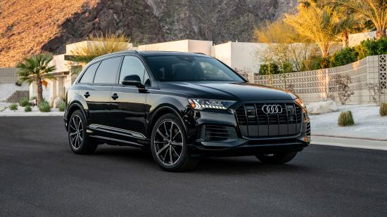 Wallpaper Black SUV Audi Q7 55 TFSI Quattro, 2020 near the mountain