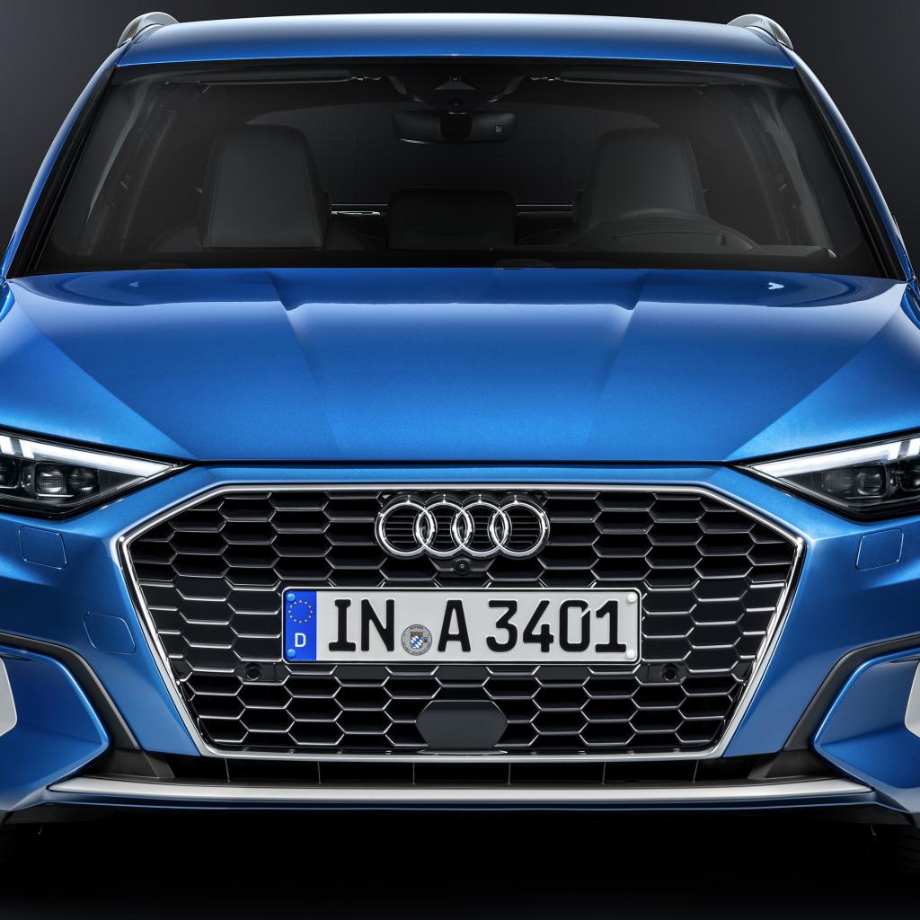 Wallpaper Blue car Audi A3 Sportback 35 TFSI 2020 on a gray background