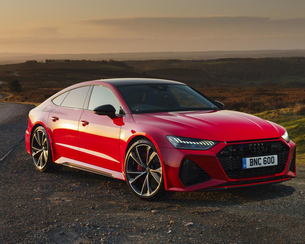 Wallpaper Red car Audi RS 7 Sportback 2020 on the highway