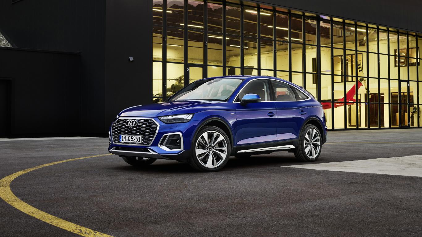 Wallpaper 2021 Audi TTS car in front of a building with large windows