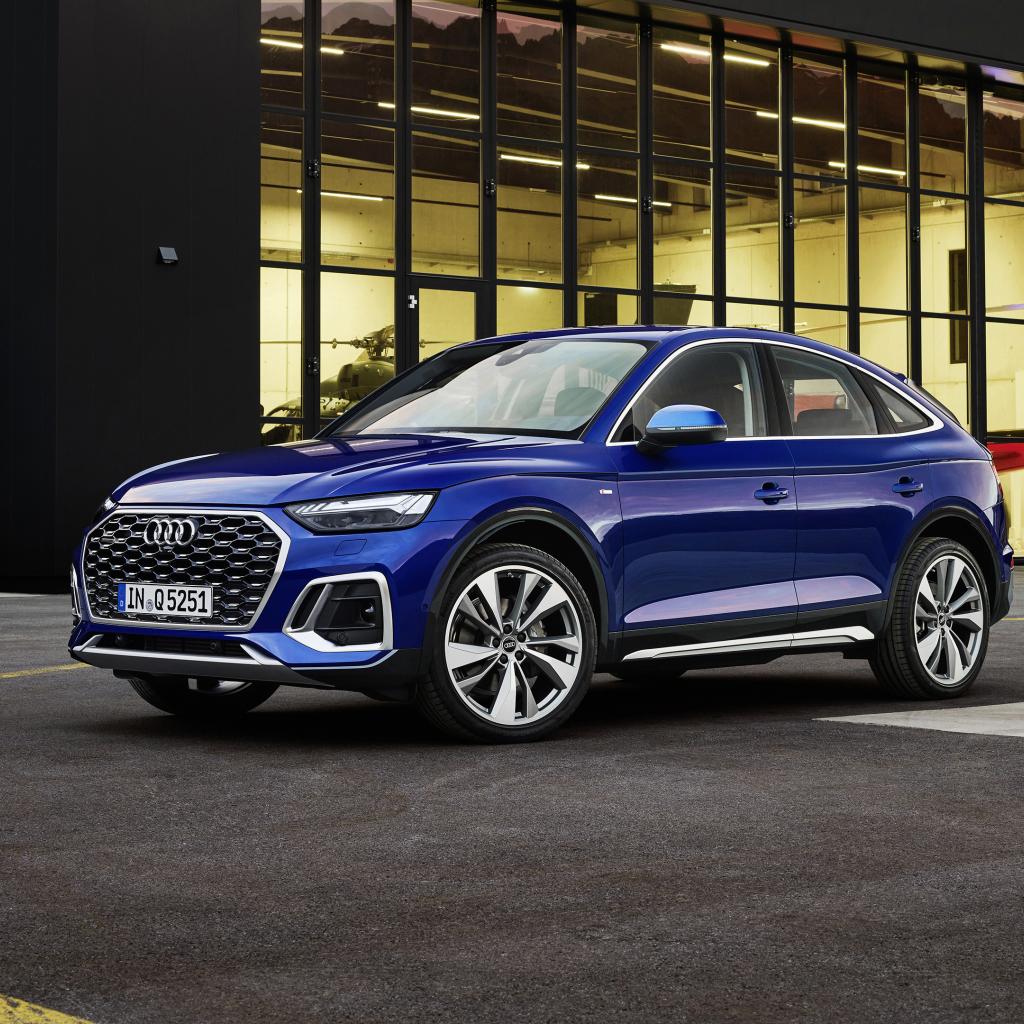 Wallpaper 2021 Audi TTS car in front of a building with large windows