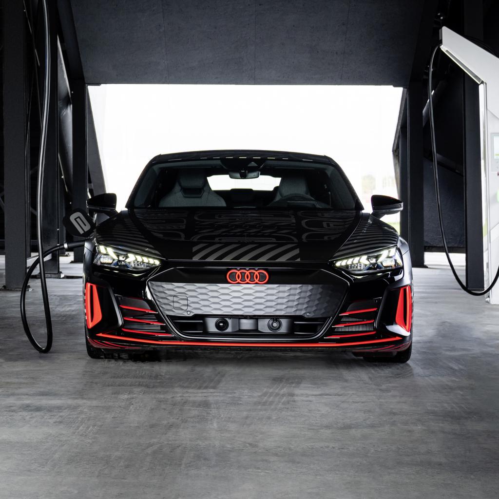 Wallpaper 2021 Audi RS E-Tron GT at a gas station
