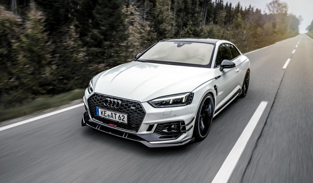 Wallpaper White car Audi RS5 2018 on the road near the forest