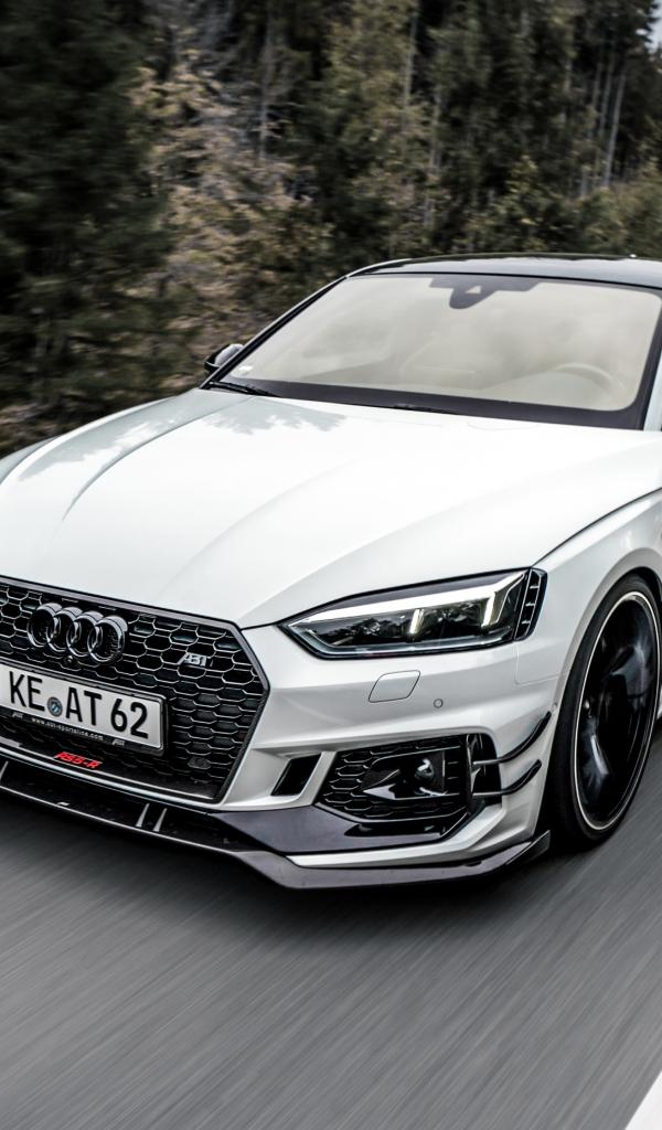 Wallpaper White car Audi RS5 2018 on the road near the forest