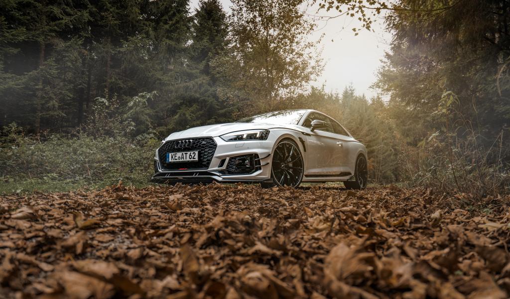 Wallpaper Audi RS5 car stands in the forest on fallen leaves