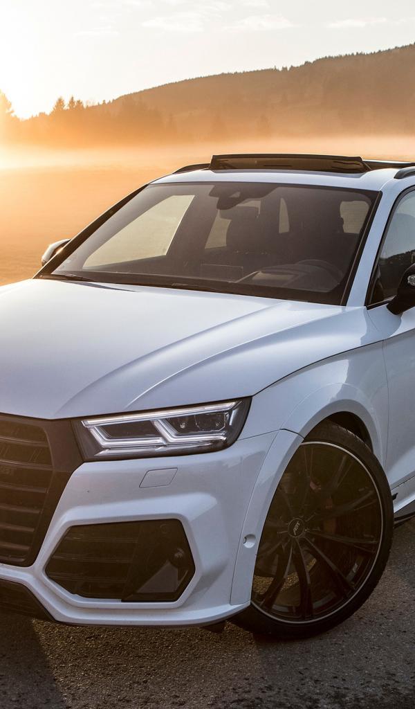 Wallpaper White car Audi SQ5, 2018 at dawn