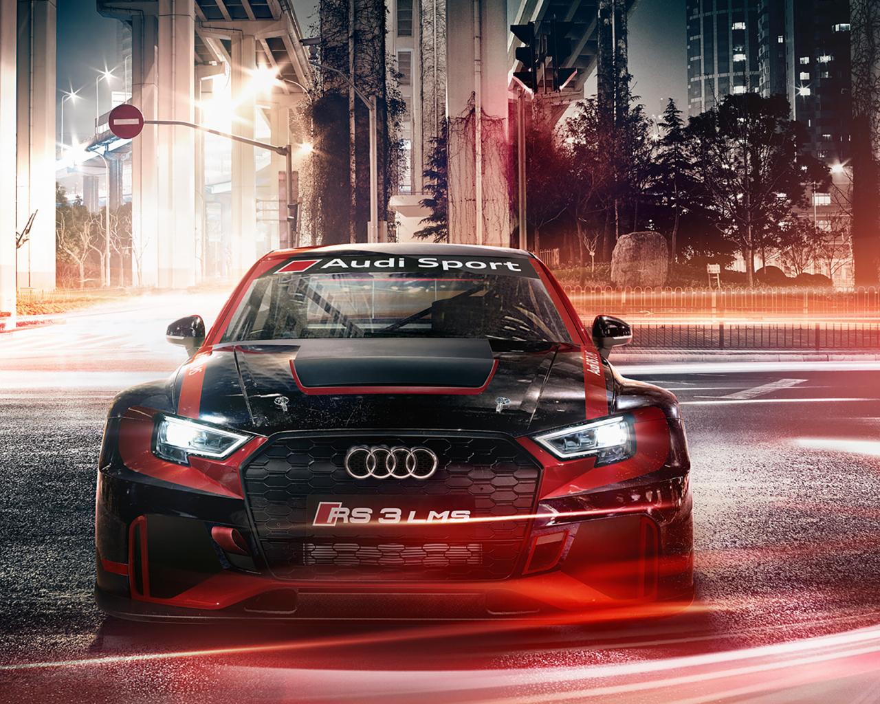 Wallpaper Audi RS 3 LMS sports car in the street