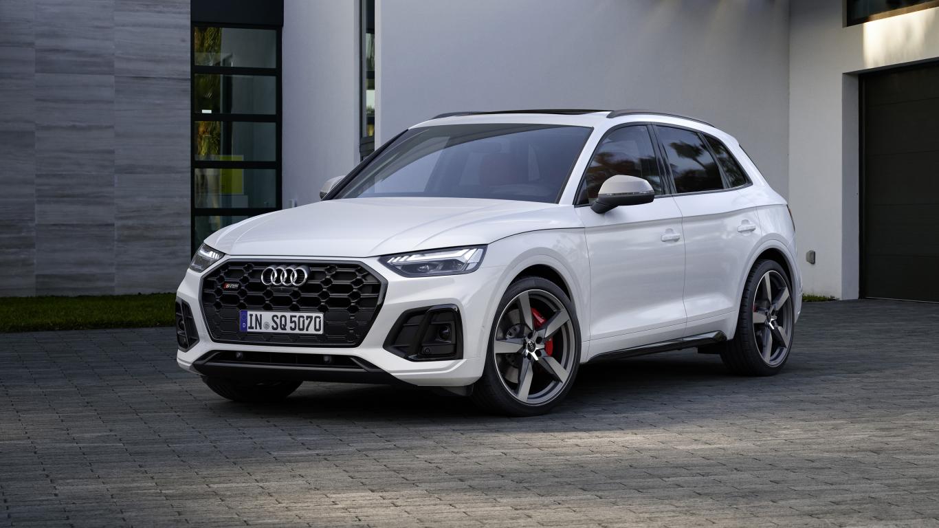 Wallpaper 2020 Audi SQ5 3.0 TDI white car near the garage