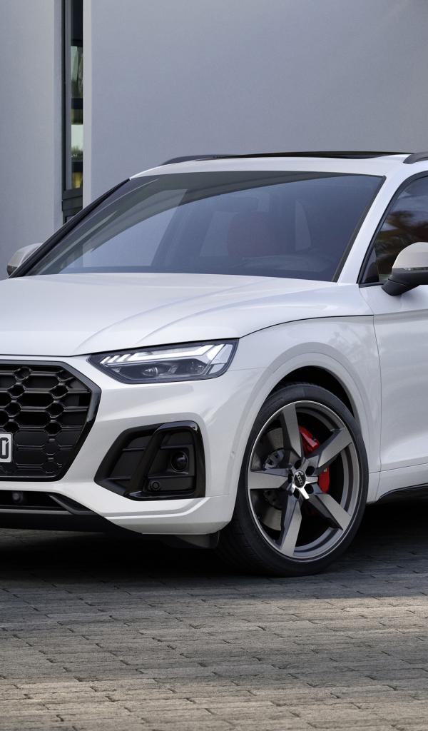 Wallpaper 2020 Audi SQ5 3.0 TDI white car near the garage