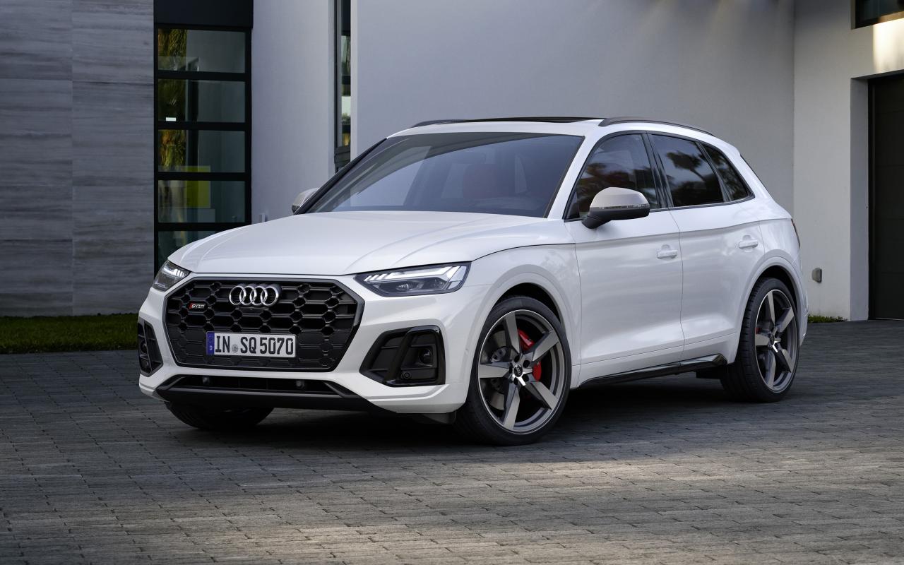 Wallpaper 2020 Audi SQ5 3.0 TDI white car near the garage
