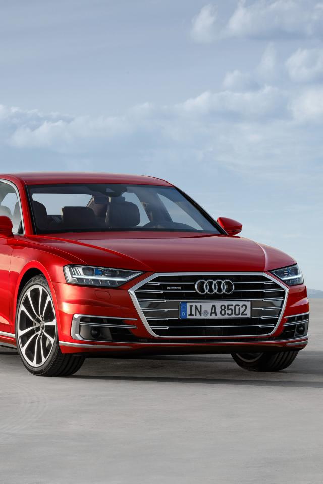 Wallpaper Red car Audi A8 on the sky background