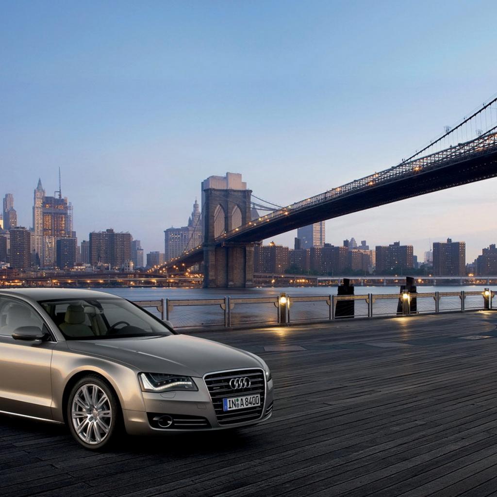 Wallpaper Audi A8 under the bridge